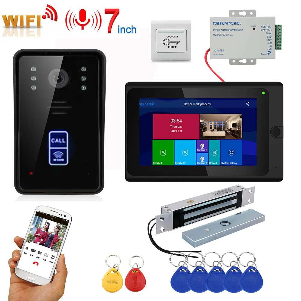 BEST QUALITY 7inch Wireless Wifi RFID Video Door Phone Doorbell Intercom Entry System with 280kg Mortise Mount D
