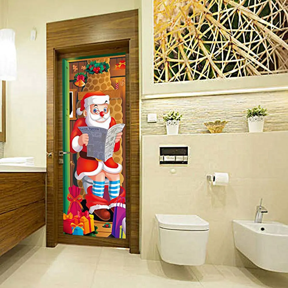 HOT Sale Dropship Santa 3D Simulation Door Stickers Removable Waterproof Wall Stickers Bedroom Living Room D