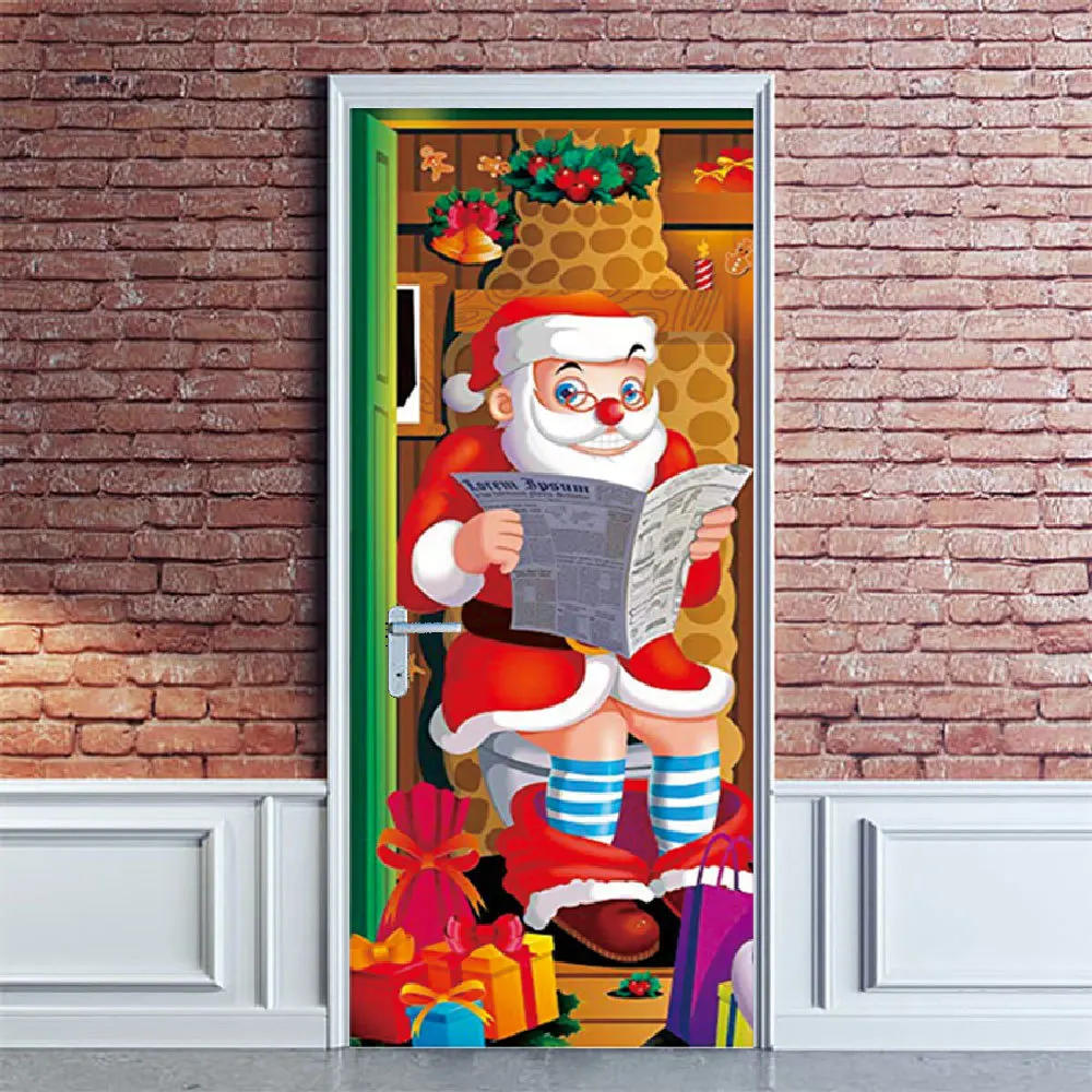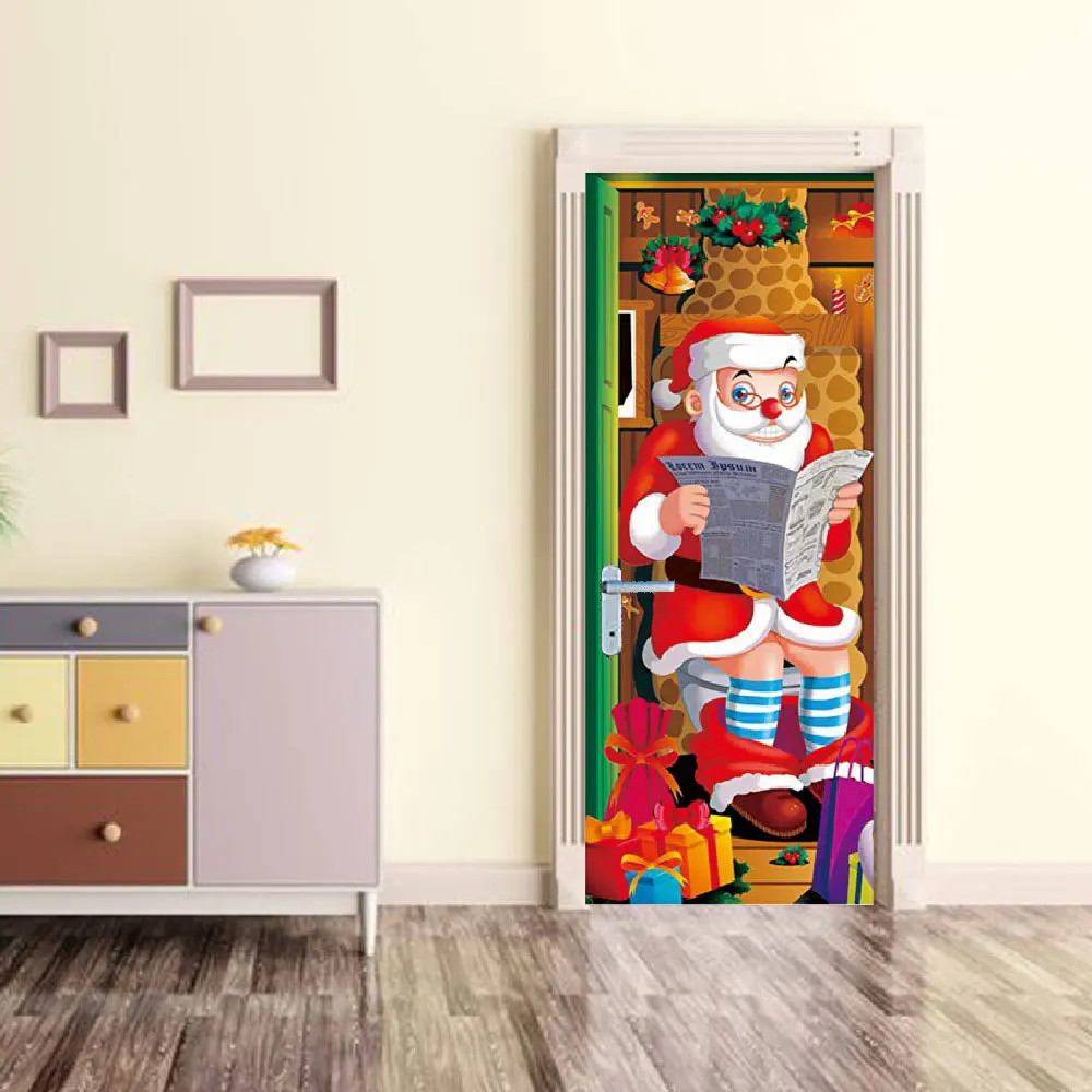 BEST SELLER Dropship Santa 3D Simulation Door Stickers Removable Waterproof Wall Stickers Bedroom Living Room D
